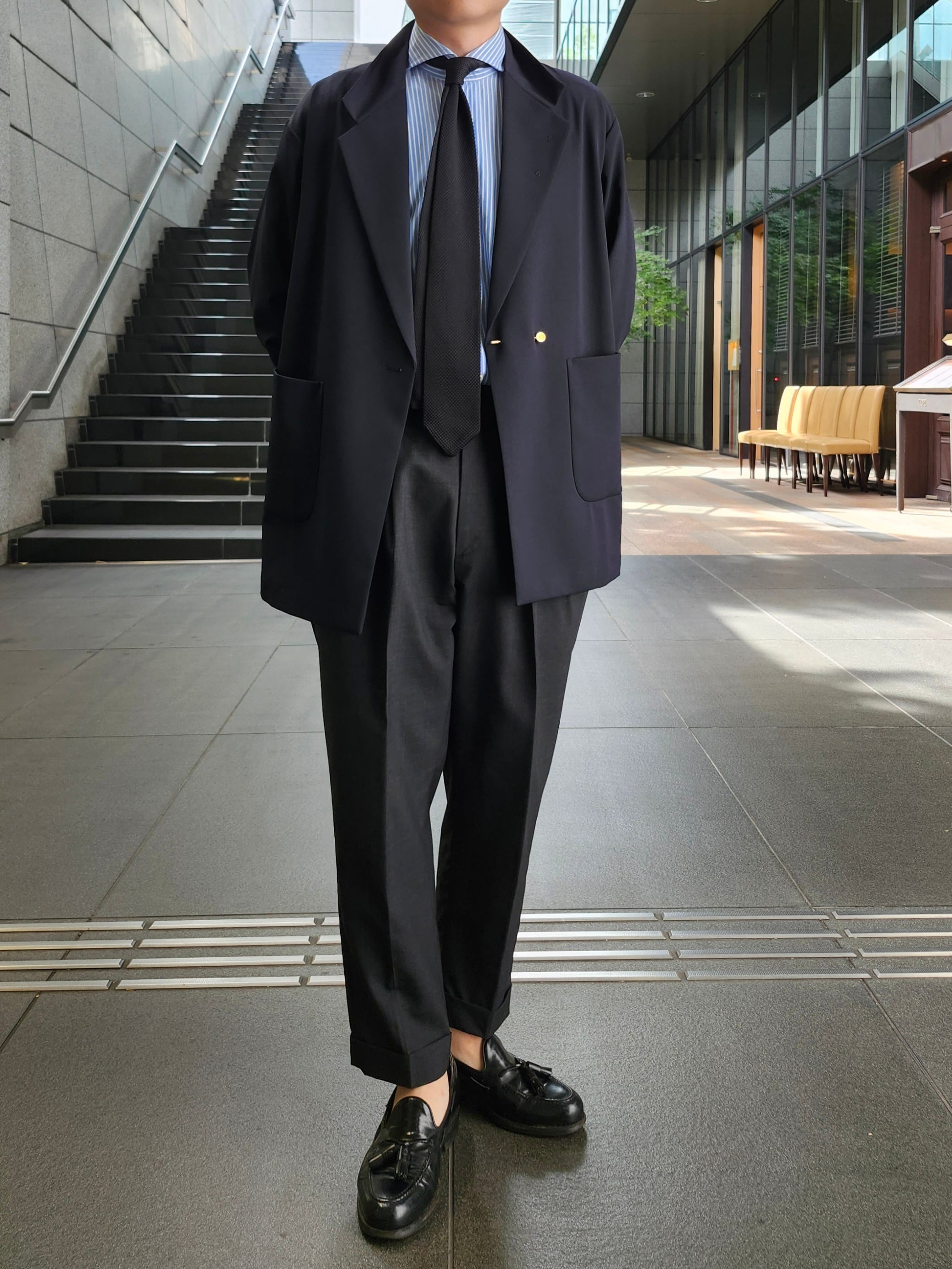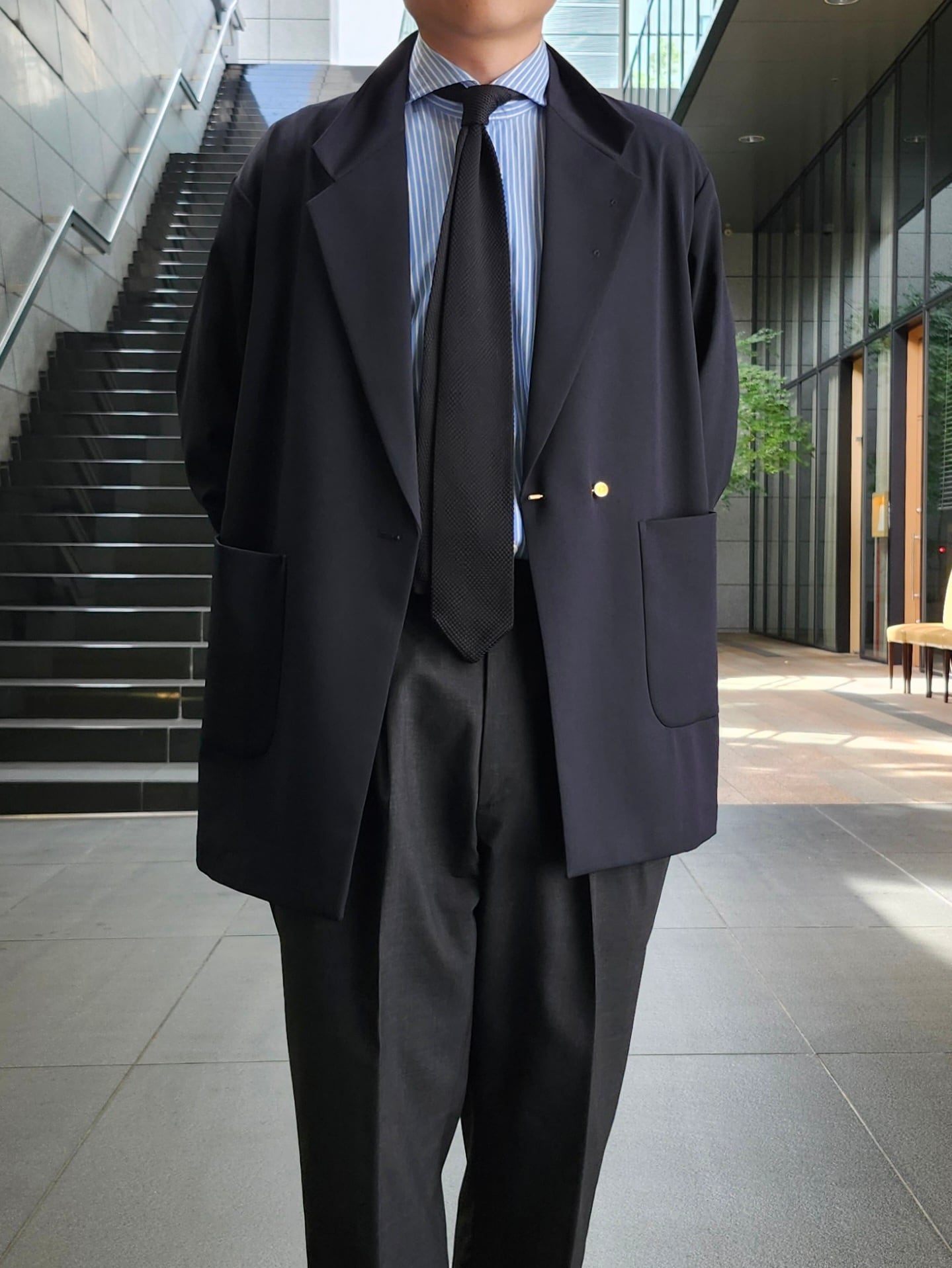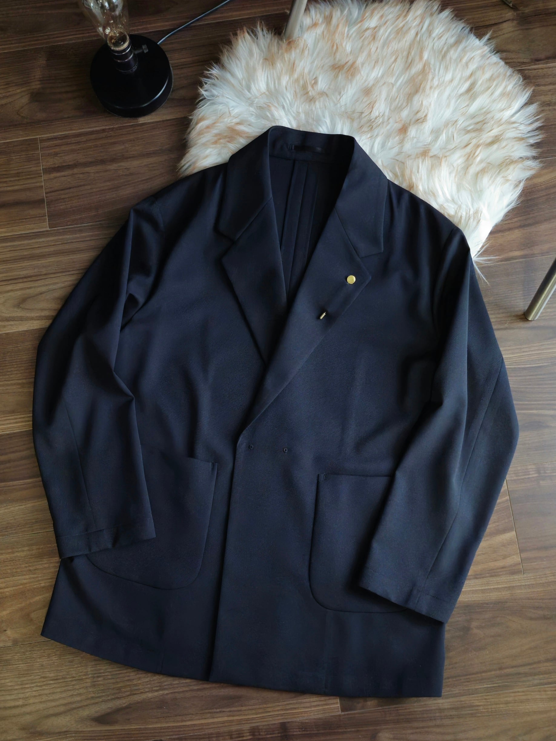フロントの重なり量が少ないセミダブル仕様で、シングルともダブルとも一味違うアンニュイな佇まい。
