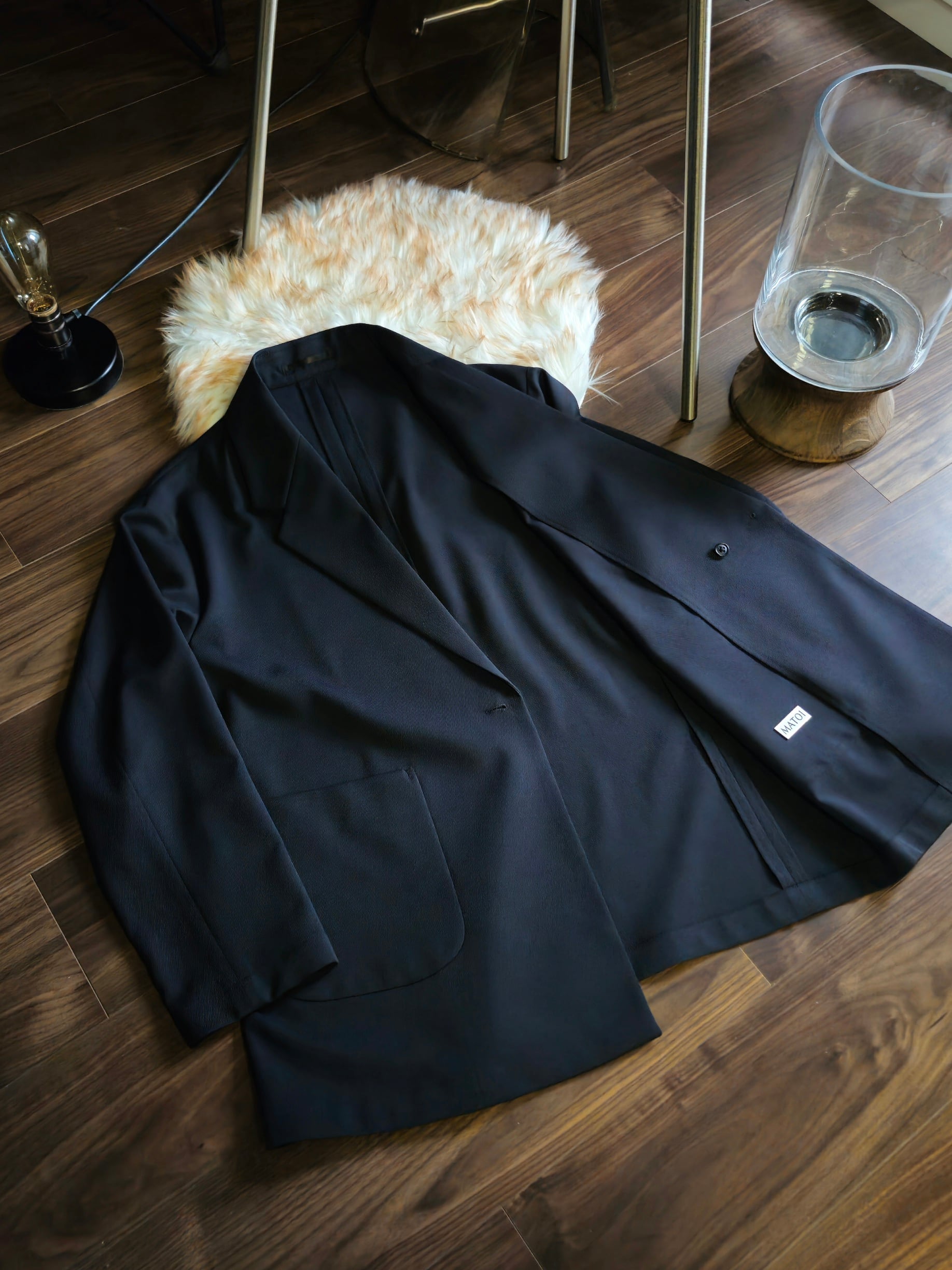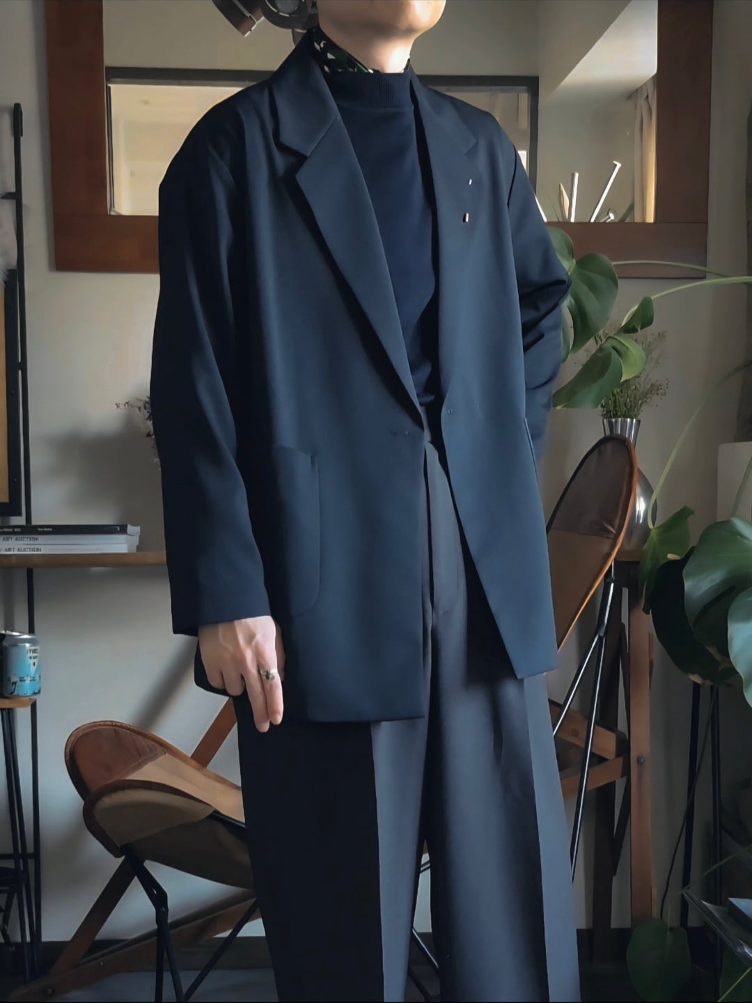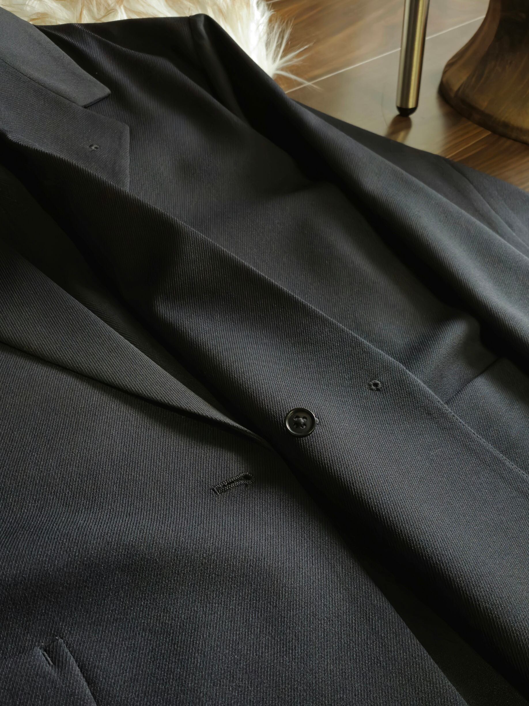 フロントの重なり量が少ないセミダブル仕様で、シングルともダブルとも一味違うアンニュイな佇まい。
