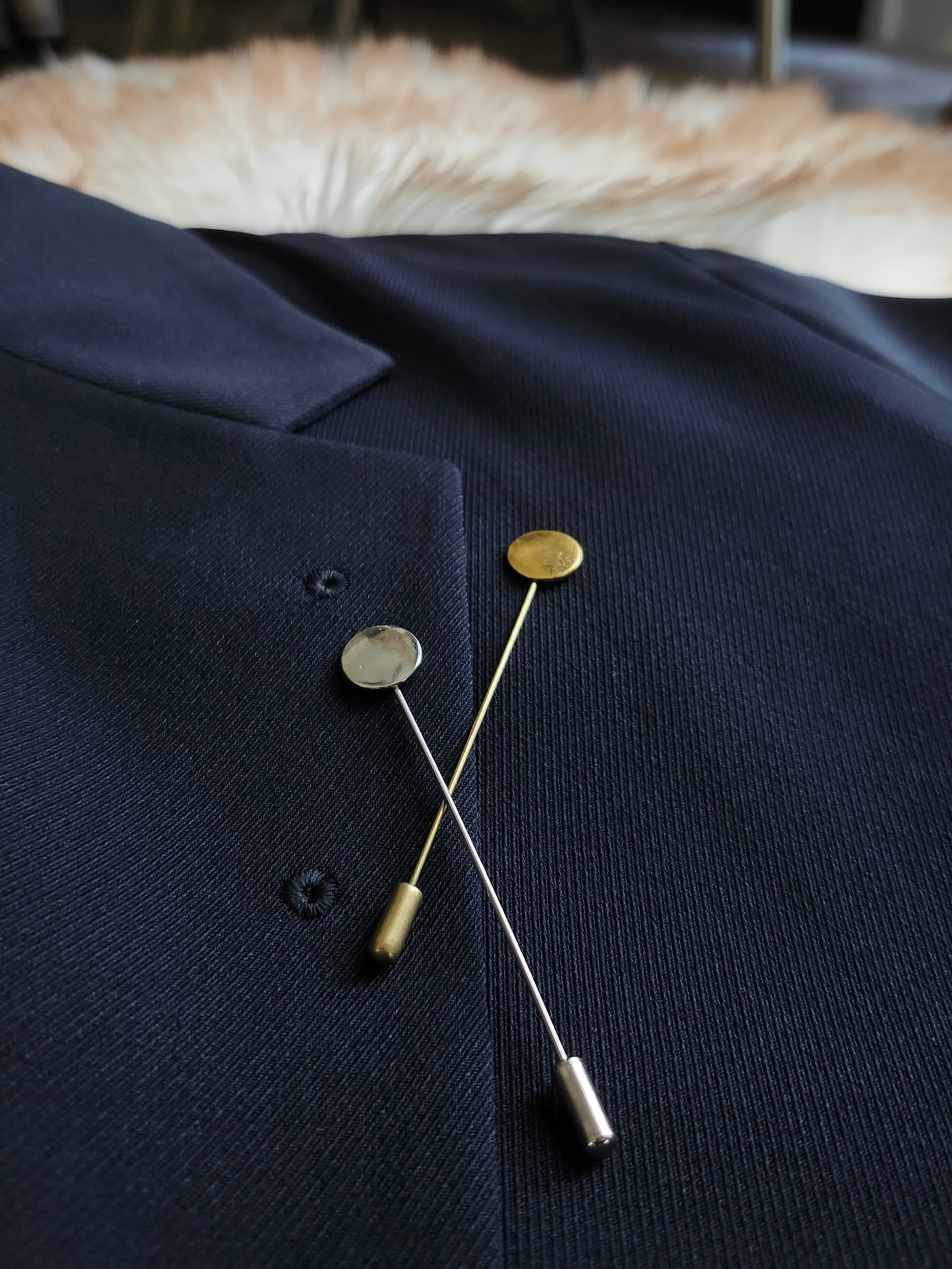 ラペルとフロントに設えた菊穴にピンやブローチを取り付けでき、アレンジを楽しめます。