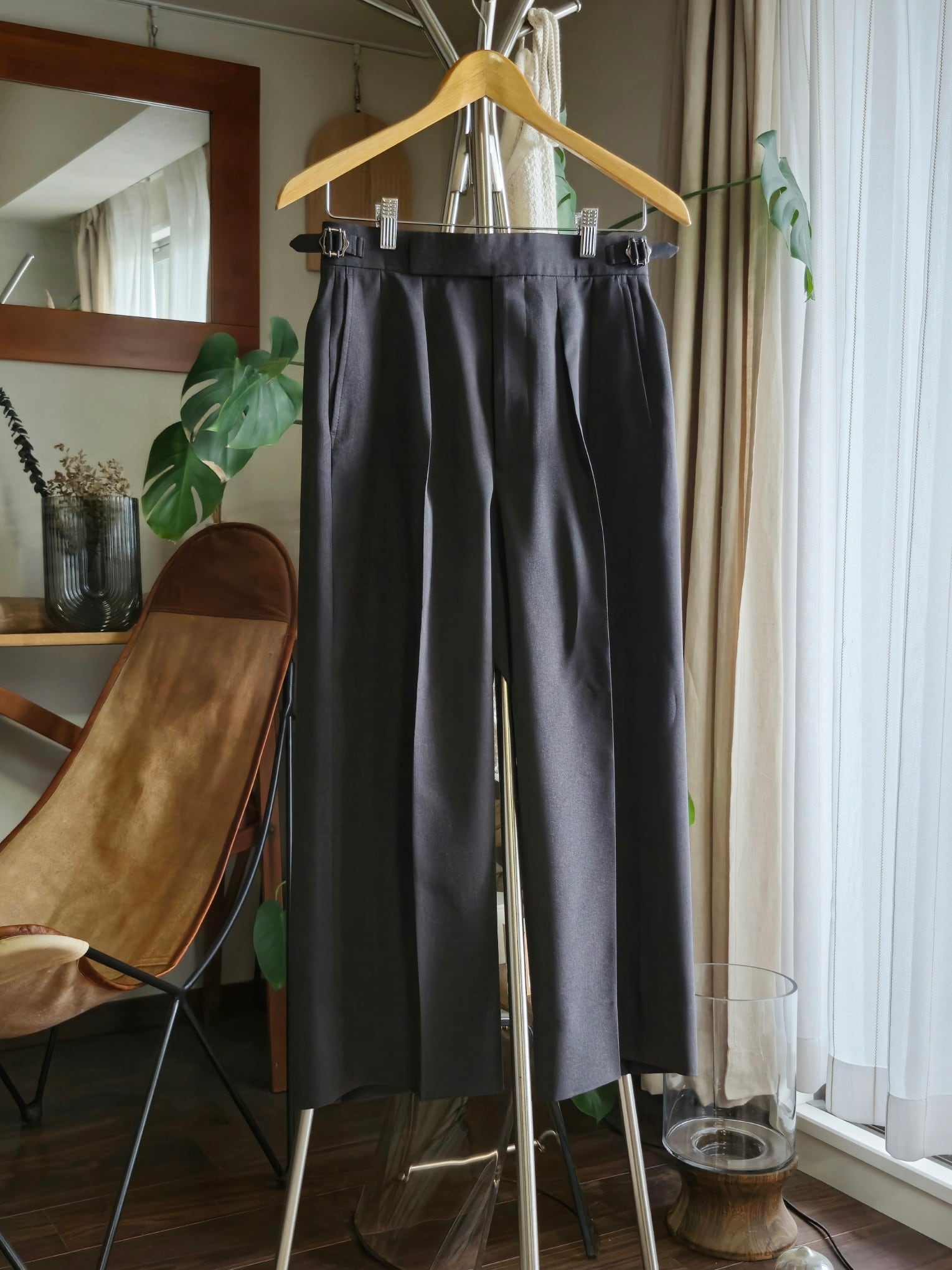 ※裾はシングル仕上げで折り返しを7cm残してあるため、その範囲で股下出しも可能です