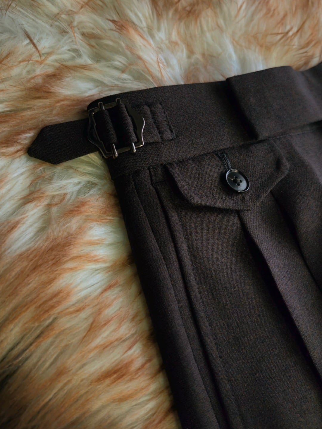※パンツの裾はシングル仕上げで折り返しを7cm残してあるため、その範囲で股下出しも可能です